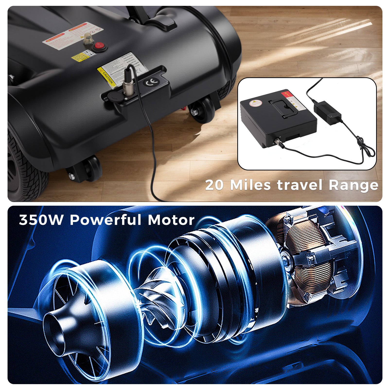 - 350W powerful Motor, Up to 5MPH, Multi-terrain Riding