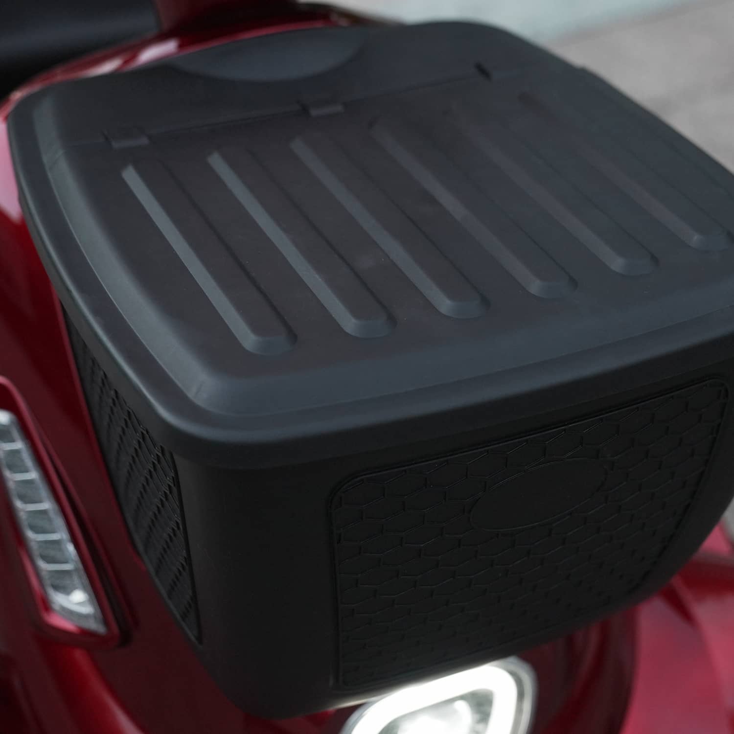 The MS02 MAX stands out with its four-way adjustable seat, 13.78-inch pneumatic tires, Bluetooth music connectivity, a full lighting system with LED taillights and turn signals, standard rearview mirrors, a unique rear storage basket, and USB charging capabilities.