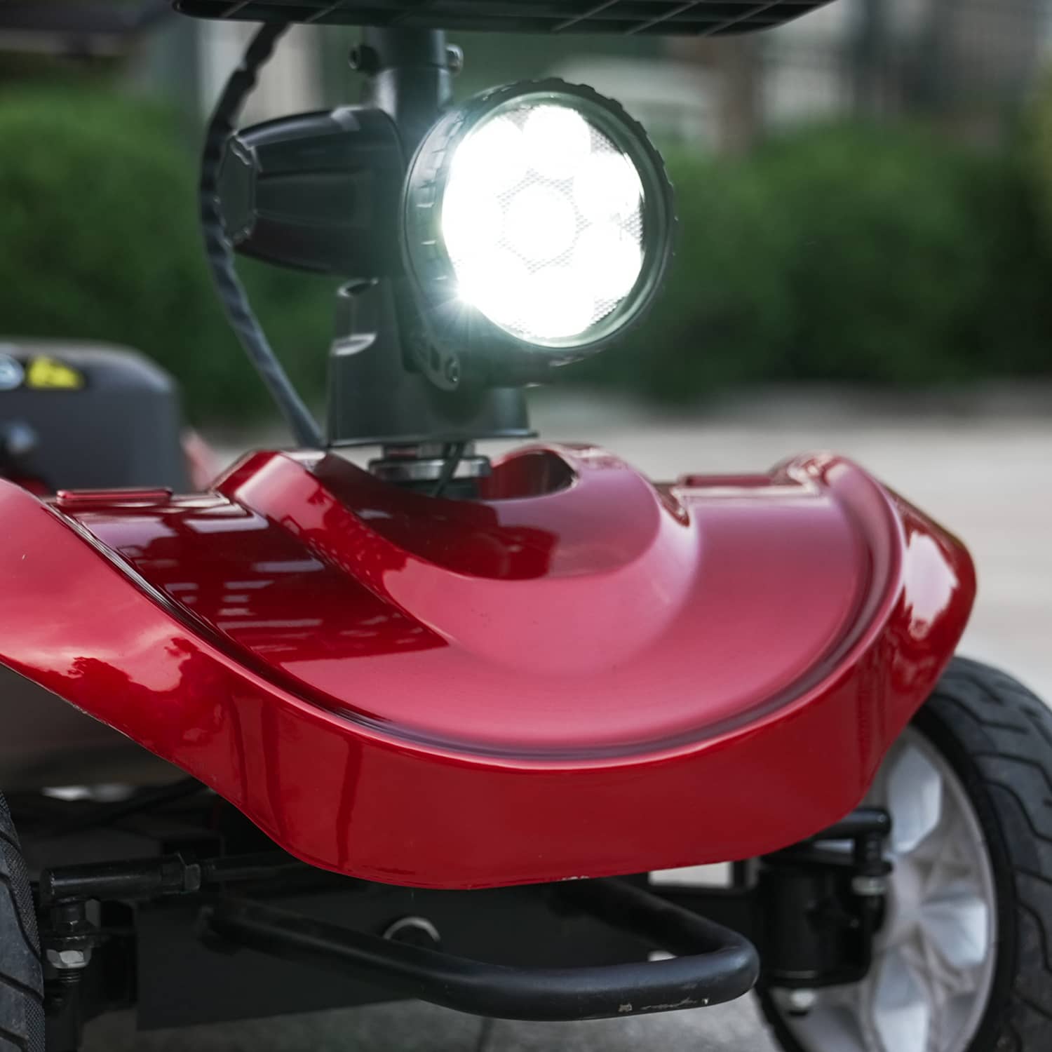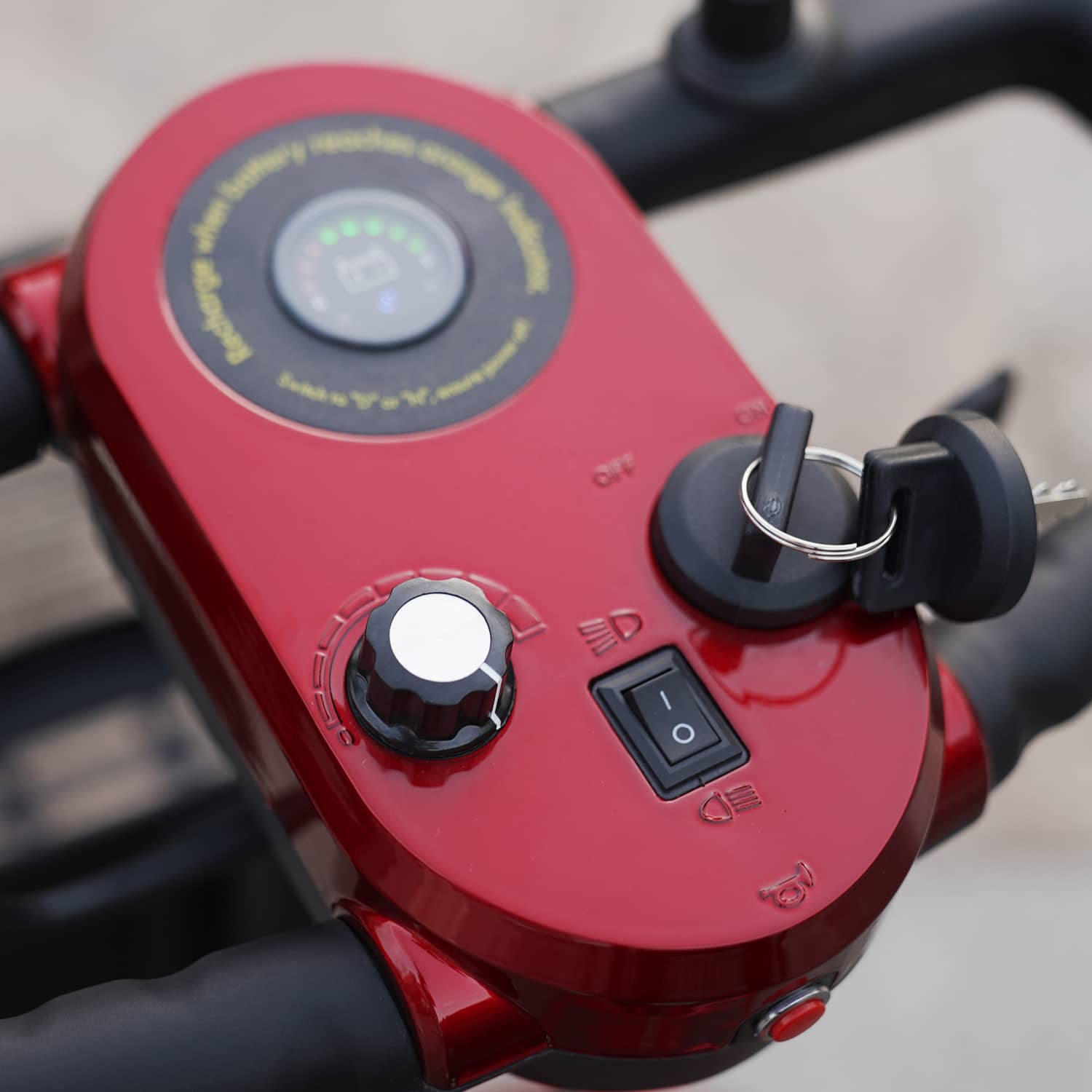 The easy-to-turn speed knob and battery gauge let you monitor battery charge. The intuitive control panel lets you easily control the safety horn and LED lighting system. The padded wraparound tiller provides comfort for your wrists, hands and fingers while steering.