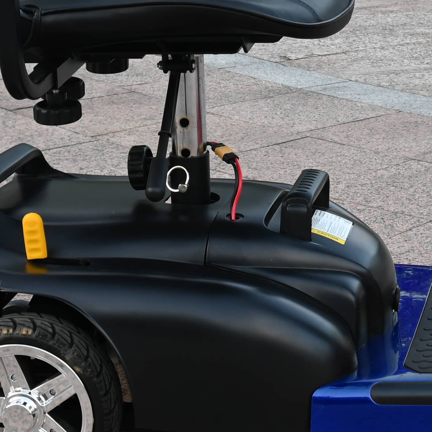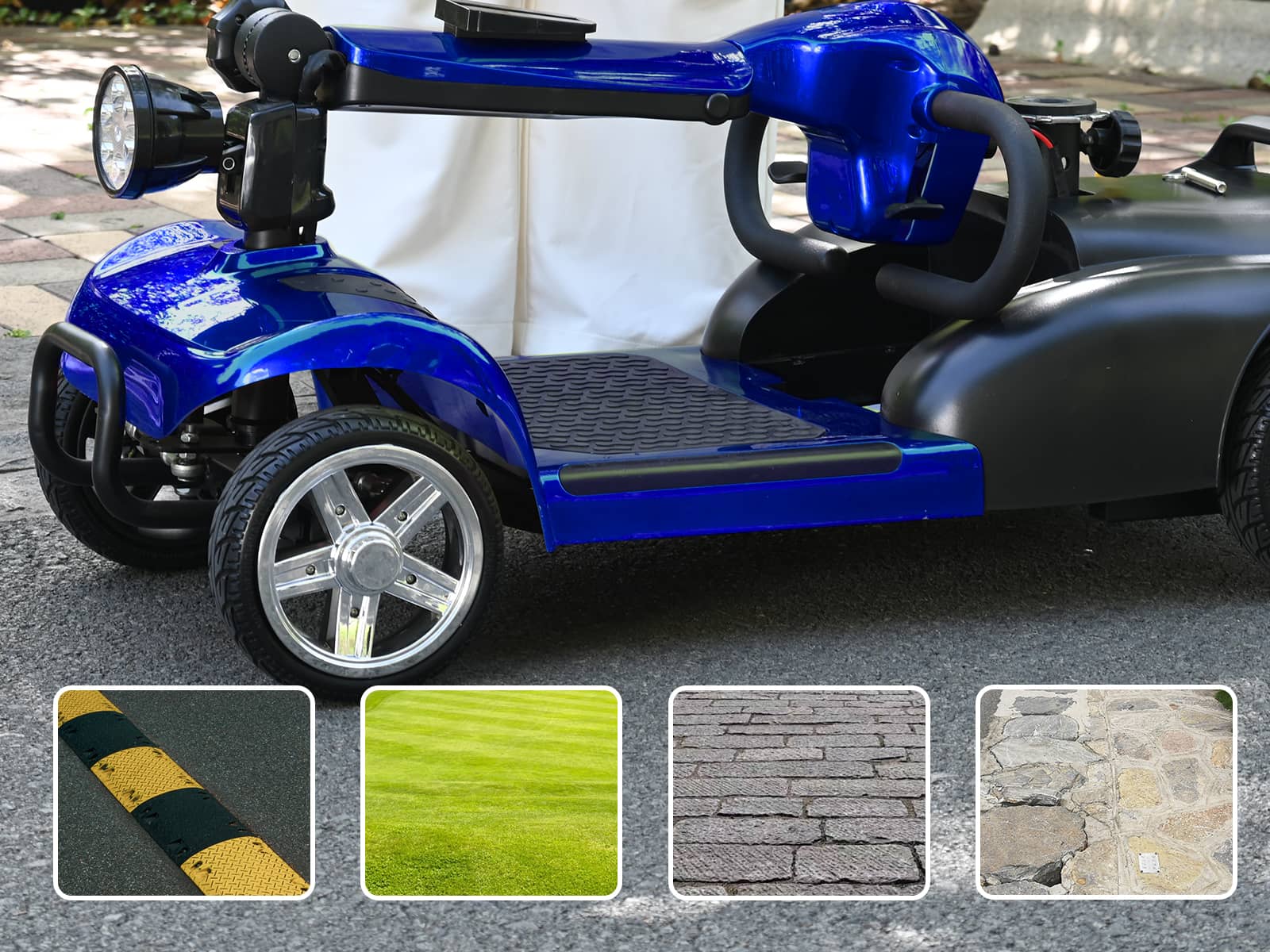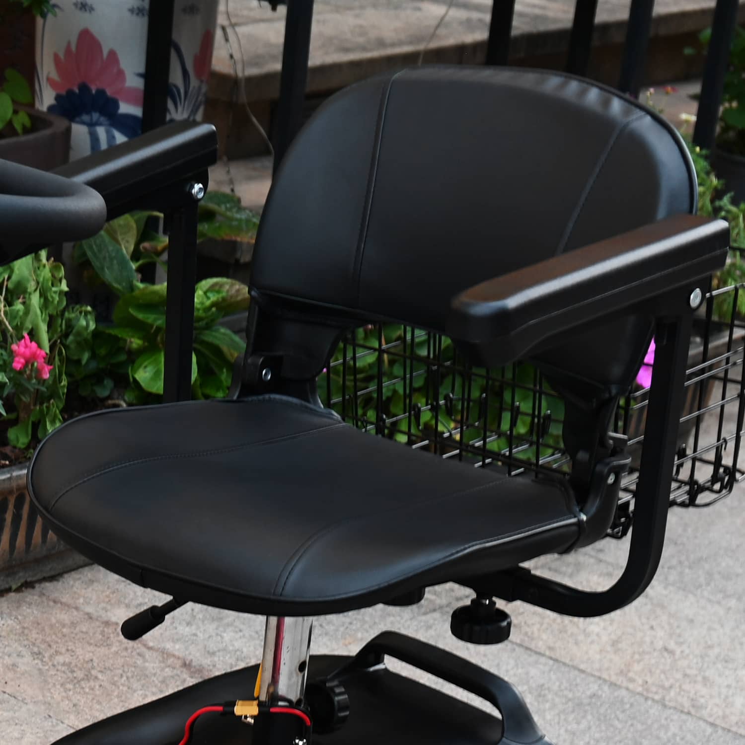 The MS02 electric scooter is a four-wheel scooter for multi-terrain use with a range of 30 miles and a top speed of 7 mph. While ensuring efficient travel, it also provides ample legroom and a swivel seat for increased comfort. It is equipped with practical features such as a headlight and a detachable basket for easy daily travel.